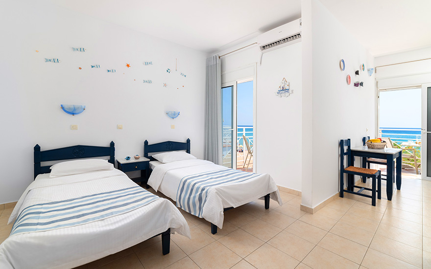 Our hotel offers spacious, tastefully furnished apartments at affordable prices. They all have sea views and are equipped with all the amenities to ensure you enjoy a comfortable and pleasant stay,